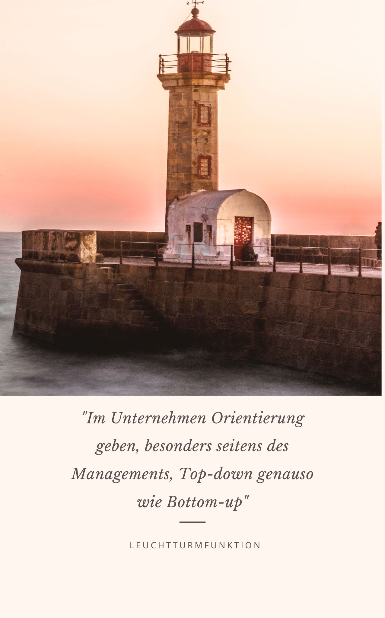 Menschen, nicht nur Führungs- sondern auch Fachkräfte, wie Leuchttürme, mit einer unglaublichen Strahlkraft auszustatten, so dass andere Menschen in deren Umfeld ebenfalls in die Kraft gebracht werden können, damit Veränderung kein Fluch (Druck und Angst) sondern ein Segen sein kann (Sinnhaftigkeit, Weiterentwicklung und Zukunftsfähigkeit).